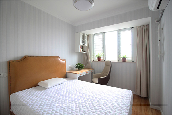 女主的衣服包包比較多,希望有足夠的收納和儲(chǔ)存空間,設(shè)計(jì)師經(jīng)過測(cè)量勘察結(jié)構(gòu)后,調(diào)整了主臥的使用面積,增加公用儲(chǔ)物空間,房間里墻面也做了衣櫥增加收納,女主再也不用擔(dān)心衣服沒地方放了。