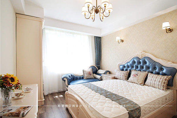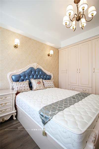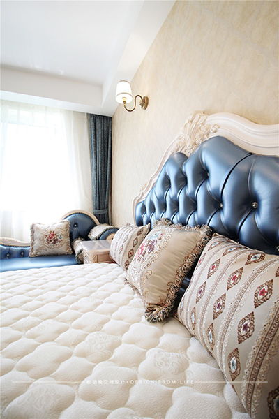 臥室延續(xù)了客廳空間的奢雅,以淡粉色為主色調(diào),促使空間產(chǎn)生了柔軟細(xì)膩的情緒氛圍,不僅增添了奢華格調(diào)的精致,也增加了一抹溫柔舒緩的氣息,仿佛所有的壞心情在面對(duì)它的一瞬間就徹底被治愈。
