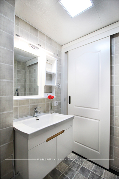 衛(wèi)生間設(shè)計(jì)師考慮到了整體性的問題,區(qū)域的合理才能真正的做到干濕分離、時(shí)尚簡(jiǎn)約的衛(wèi)生間設(shè)計(jì),強(qiáng)調(diào)去繁就簡(jiǎn),給人一種干凈明亮的感覺。白色臺(tái)盆柜和淺灰色瓷磚,搭配谷倉門,簡(jiǎn)潔歸真。